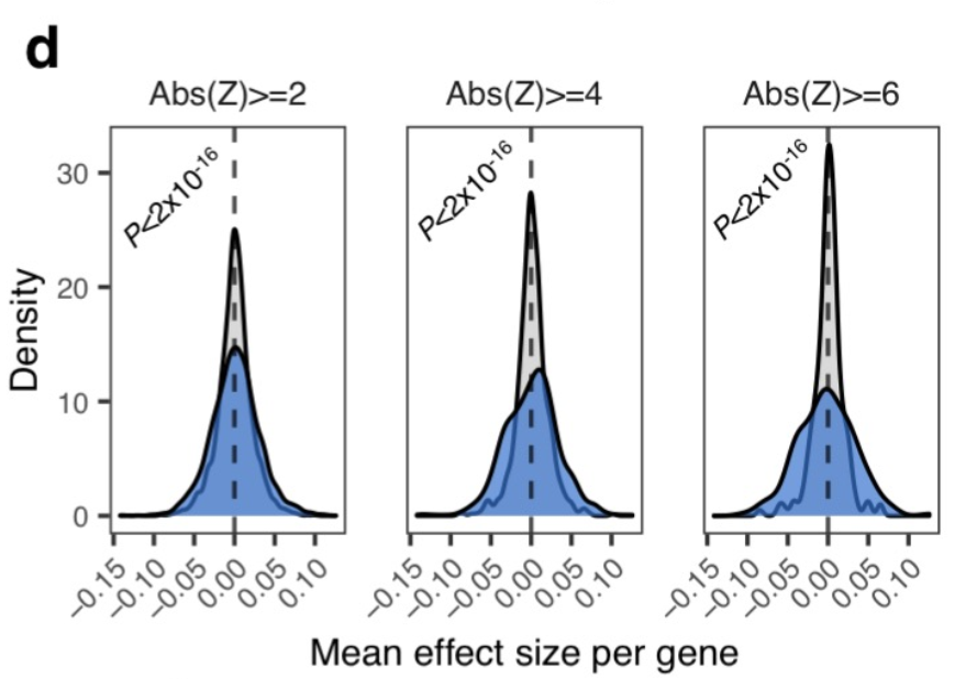 Wilcoxon rank sum test. Subset to genes linked to PRS variants.