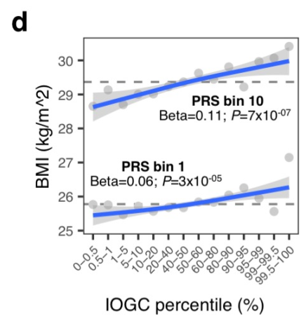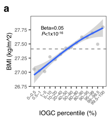 Mean change in BMI per unit change in IOGC score increases with increase in